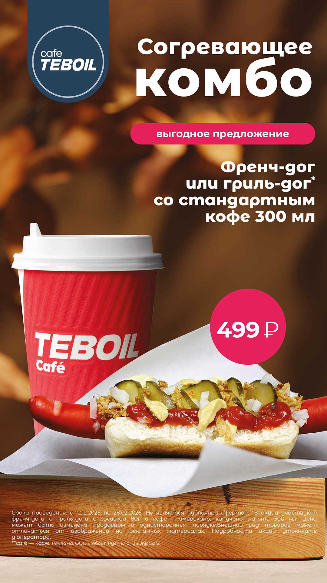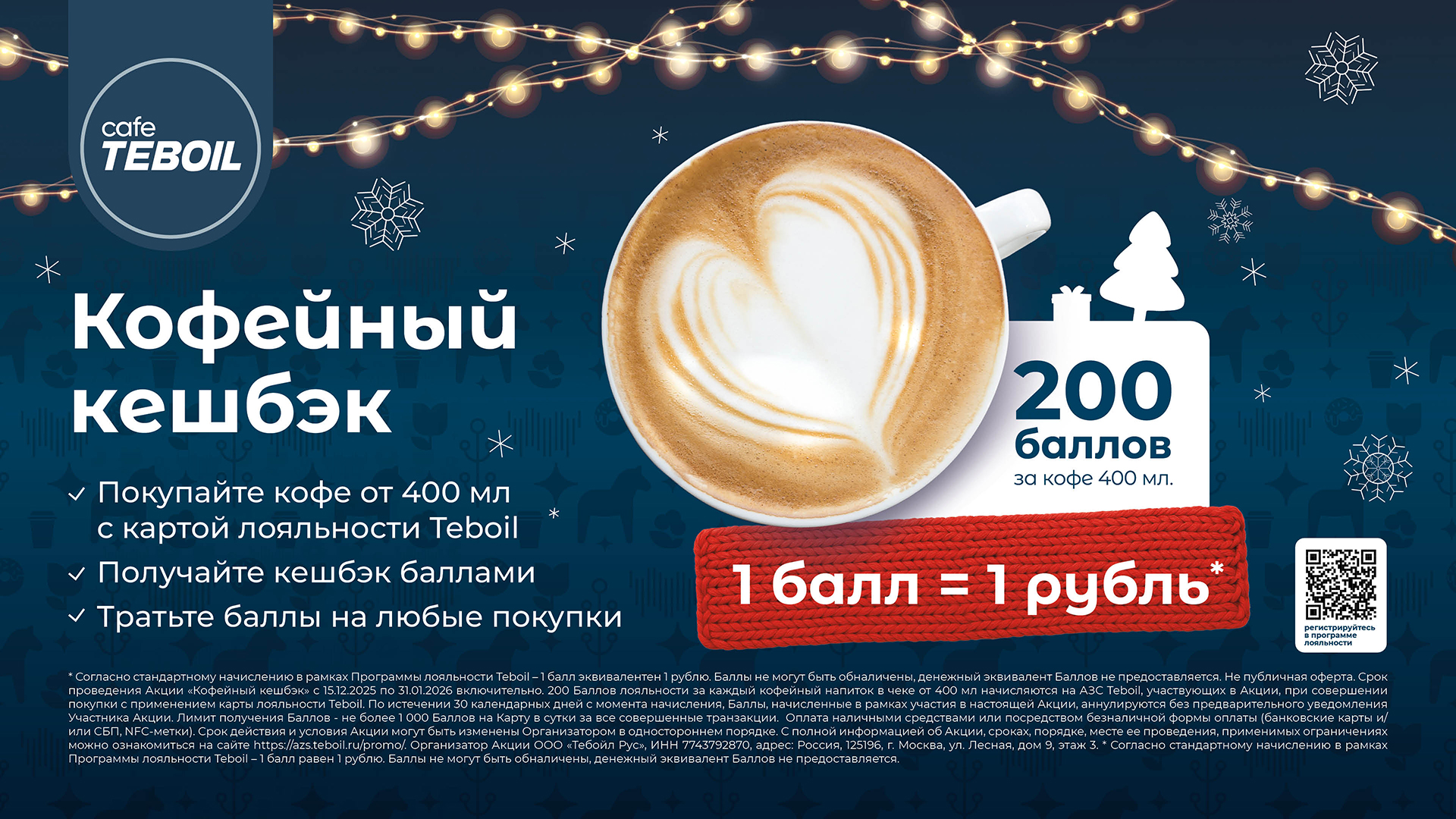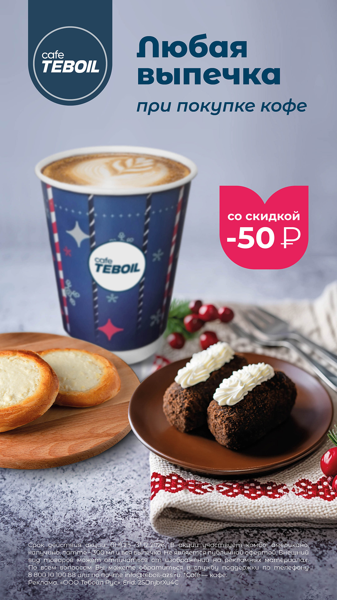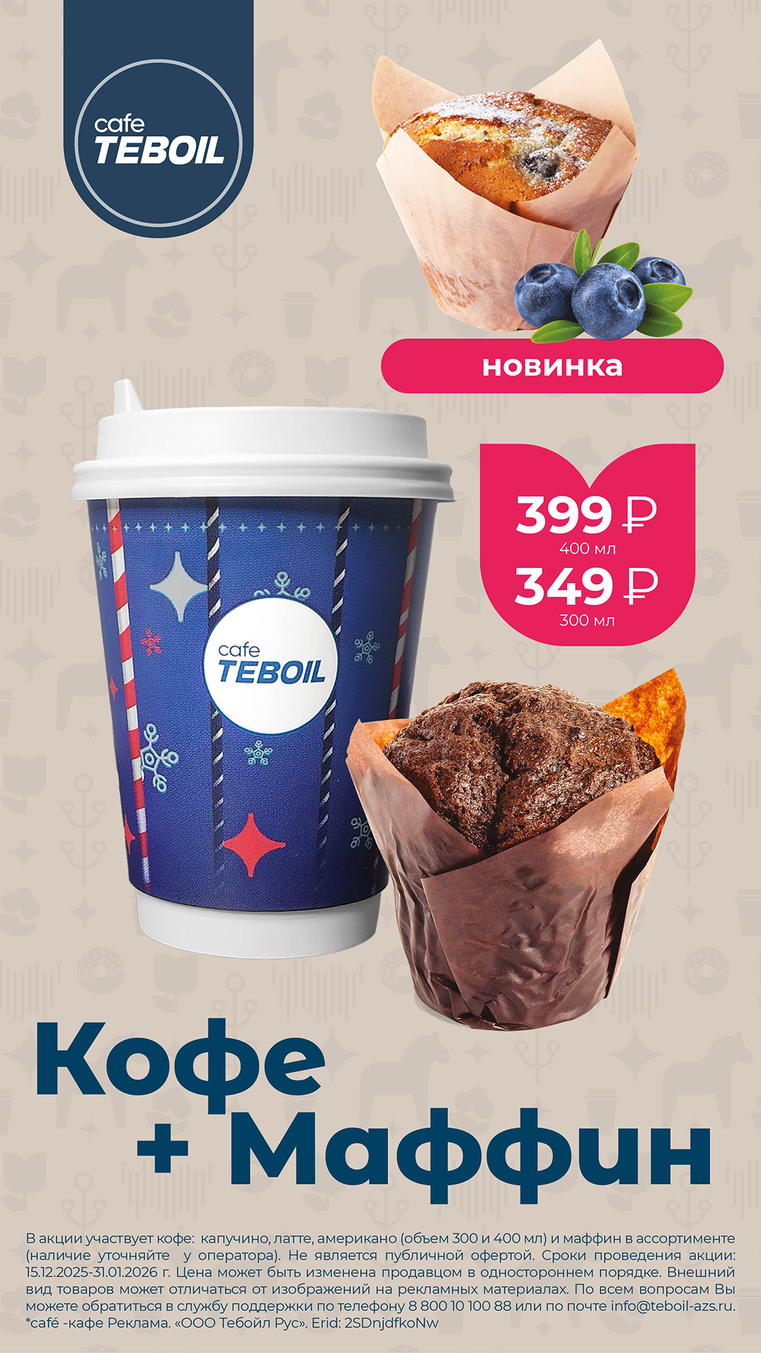 - Покупайте кофе объемом 400 мл с картой лояльности Teboil
